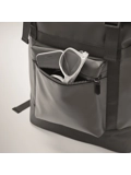 Zaino Tour delle Alpi in tela 50C con chiusura roll top e rinforzo imbottito su retro, fondo e spallacci. Tasche frontali con cerniera.
